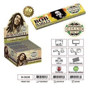 Questa è l’offerta se vuoi scatola completa Cartine Bob Marley Organic Hemp Unbleached King Size Sottili 14gr 33 Foglie.