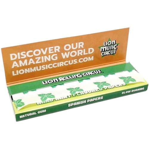 LION ROLLING CIRCUS MIND MINT 1 1/4 MEDIO GRANDEZZA CARTINE AL GUSTO DI MENTA 33 FOGLIE PER CONFEZIONE SOLO CONFEZIONE SENZA SCATOLA