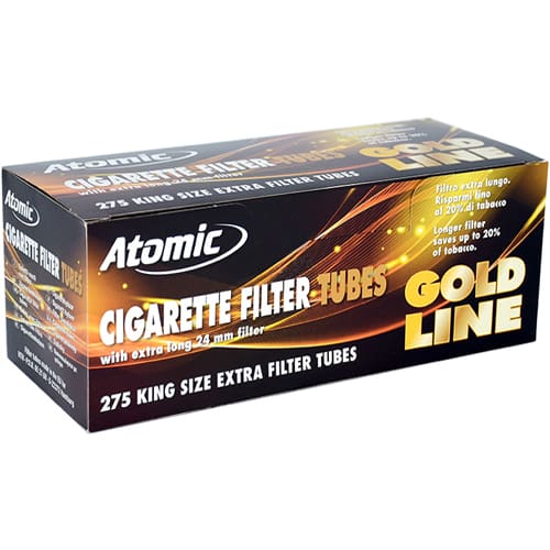 CIGARETTE TUBES ATOMIC GOLD LINE KING SIZE FILTER 275 TUBES are filter 24mm ideal for smoking.