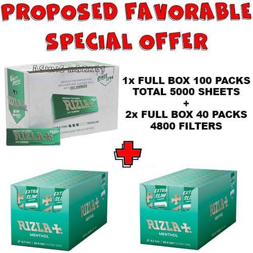 the best price, cheap filters wholesale. in this offer you get rizla green small 1x box 100 packs total 5000 leaves