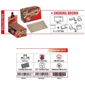 SMOKING BROWN ROLLS AND TIPS are thin rolls papers ideal for rolling cigarettes.