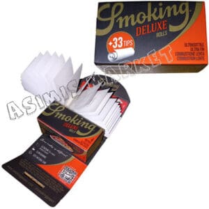 SMOKING ROLLS DELUXE ROLLING PAPERS ULTRA THIN LENGTH 4 METERS WIDTH 44mm + 33 TIPS WITH PERFORATIONS CONNOISSEUR PER PACK ONLY PACKS NO BOX